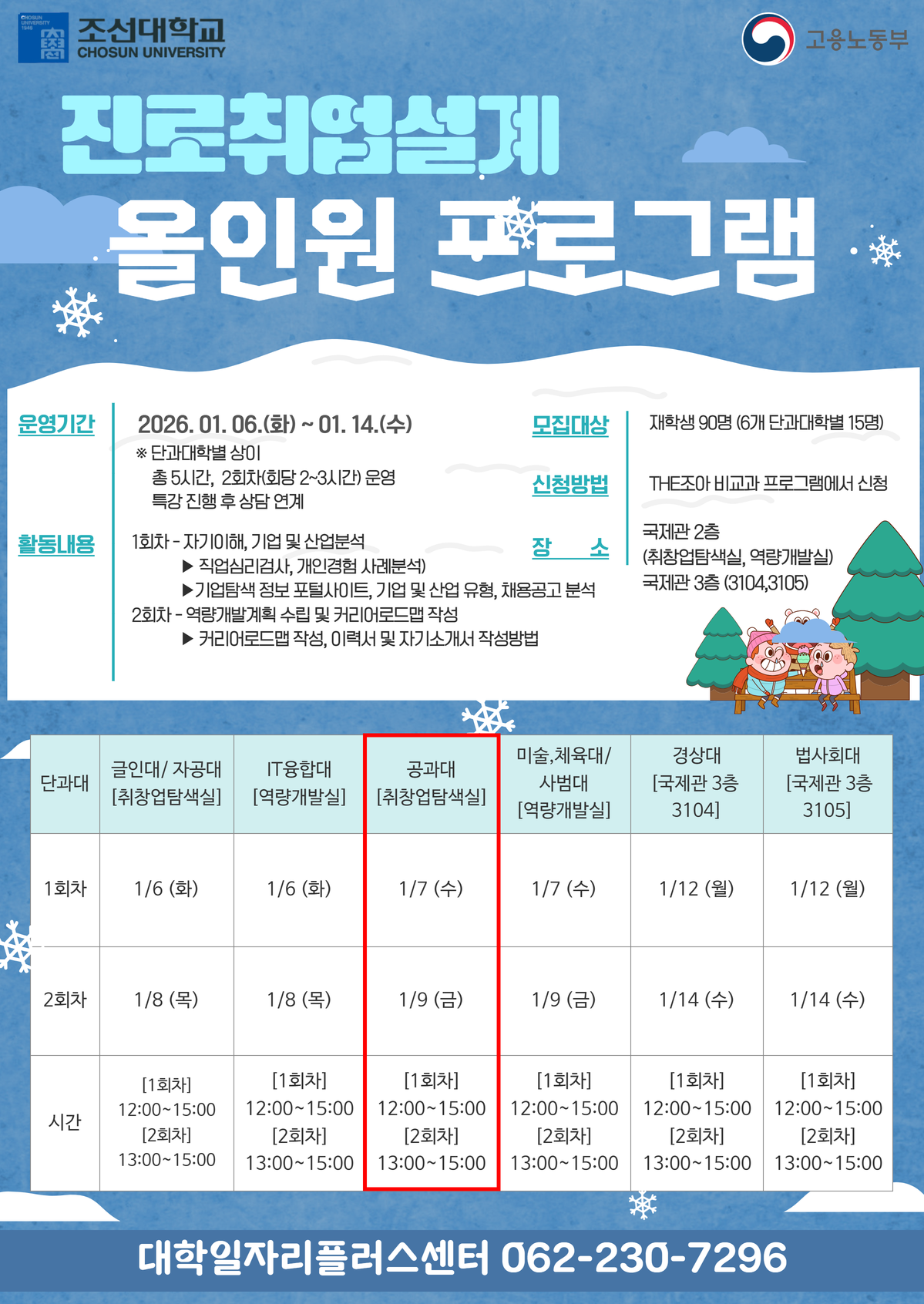 프로그램 운영 장소 국제관 2층 취창업탐색실 담당자 연락처 062-230-7296