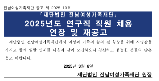 [전남여성가족재단] 2025년 연구직 직원 채용공고