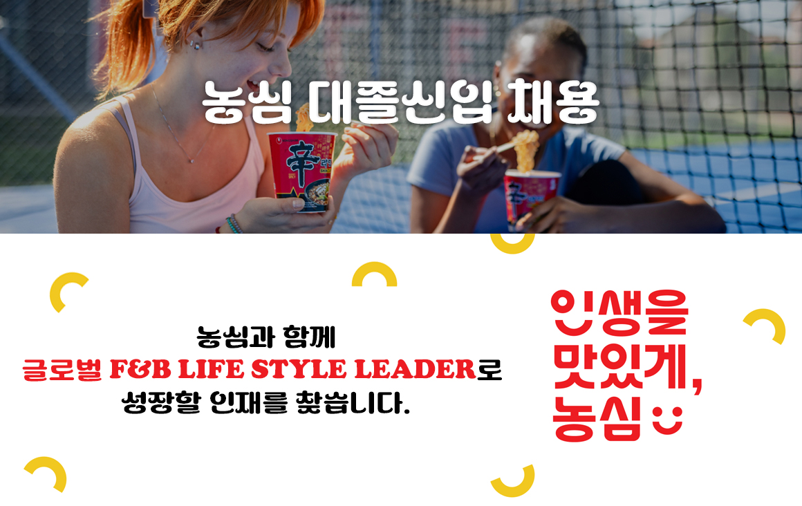 ㆍ입사지원 문의 - 농심 : 02) 820-7092 / 7099 / 7097 (recruit@nongshim.com) - 농심엔지니어링 : 02) 827-2645 (ban1026@nse.co.kr) |