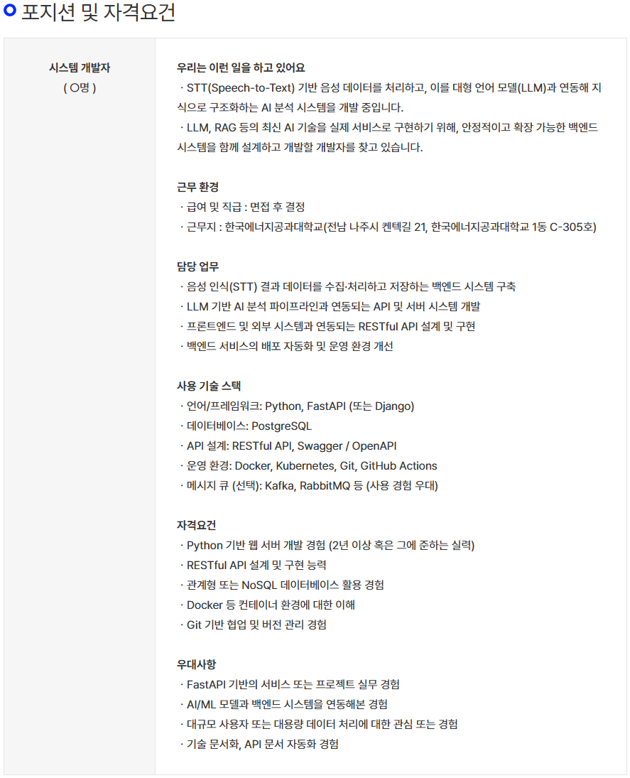 접수기간: 2025.10.21(화) ~ 2025.11.04(화) / 채용 시 마감