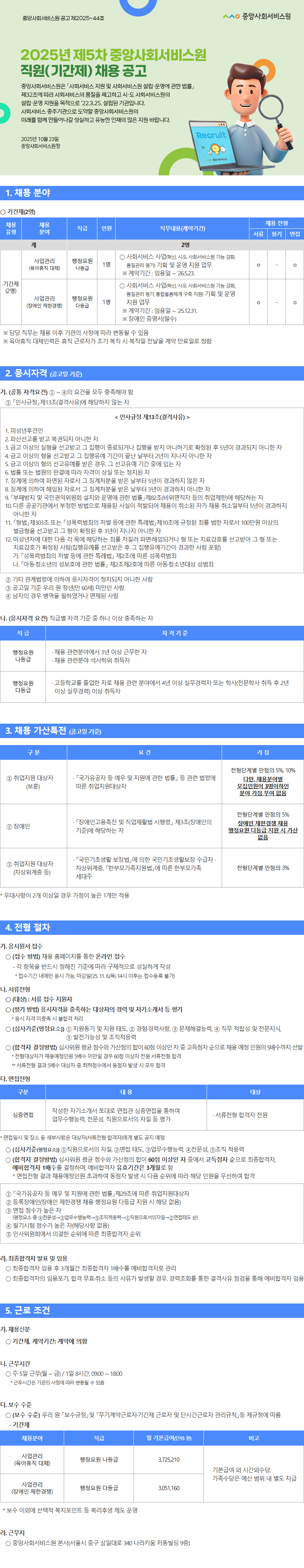 중앙사회서비스원 2025년 제5차 직원(기간제)채용