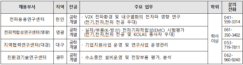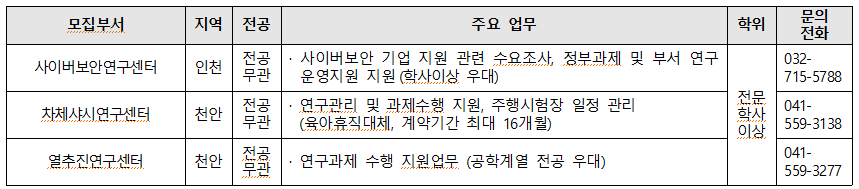 | 모집 분야 | 연구분야, 기술지원분야 | 고용 형태 | 계약직 |
