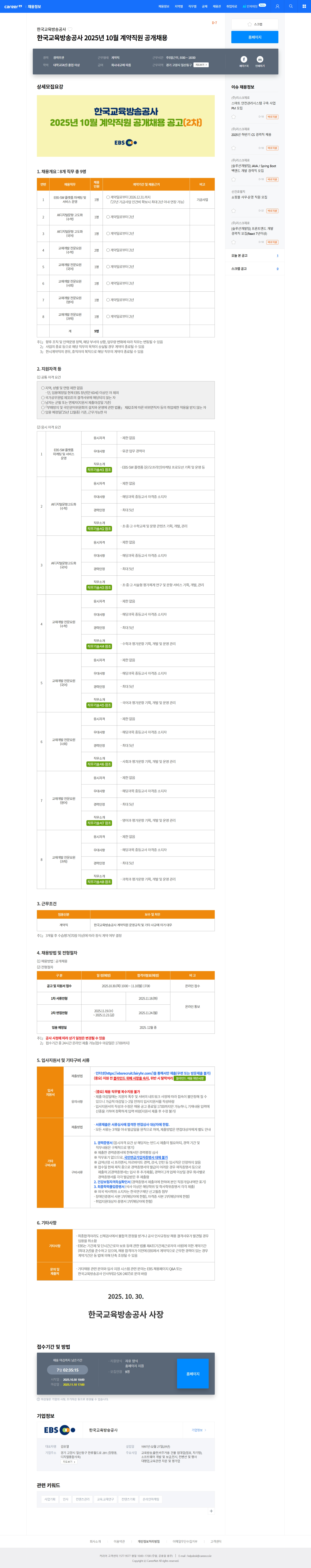 [한국교육방송공사] 2025년 10월 계약직원 공개채용