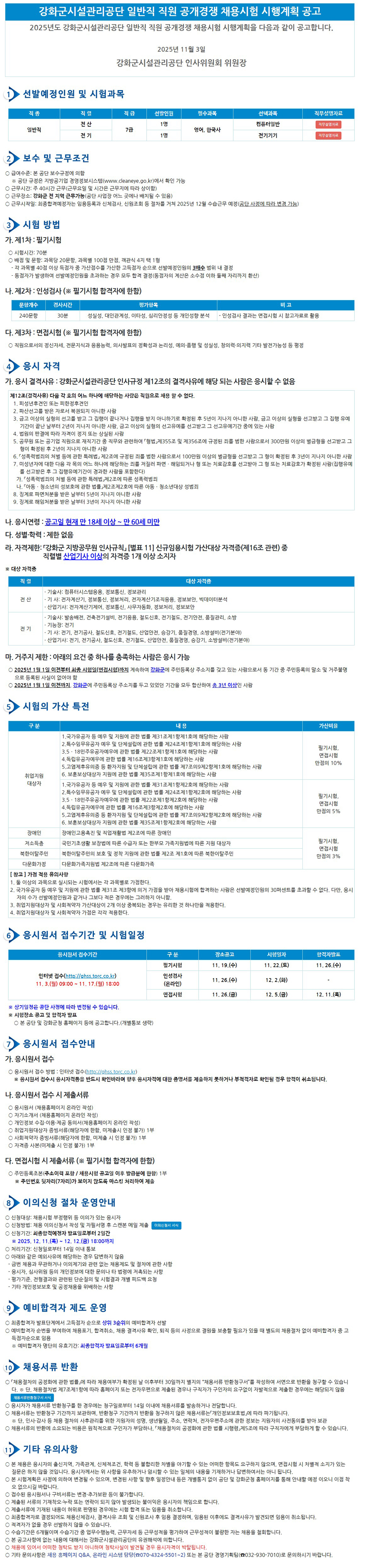 강화군시설관리공단 일반직 직원 공개경쟁 채용시험 시행계획 공고