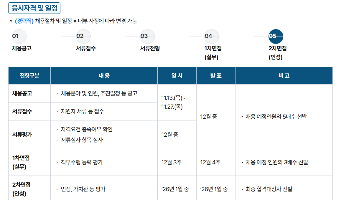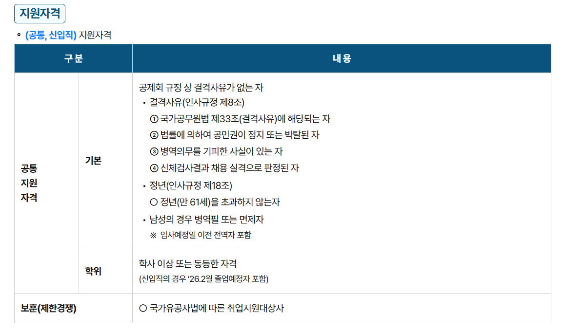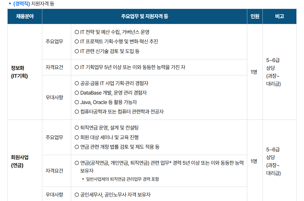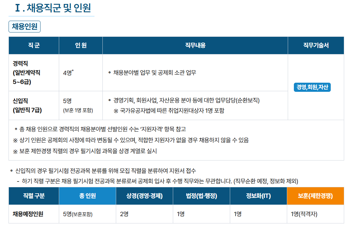경력직(일반계약직 5~6급) , 신입직(일반직 7급)