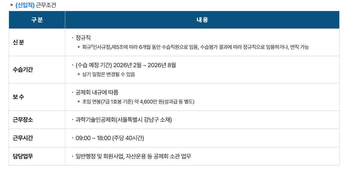 과학기술인공제회 2026년 과학기술인공제회 신입직원 채용