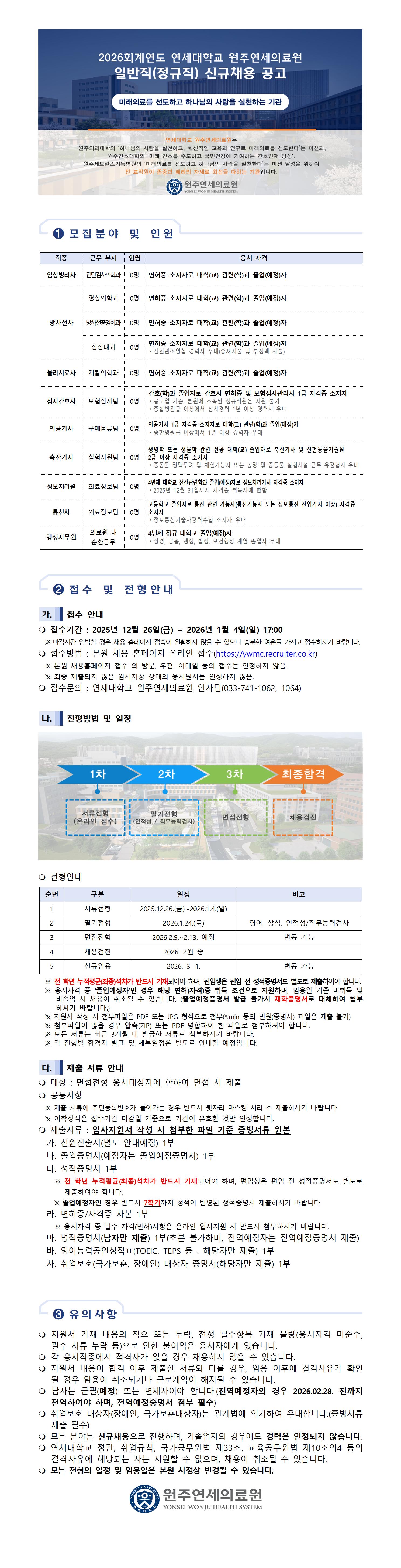 2026년 연세대학교 원주연세의료원 일반직(정규직) 신규채용