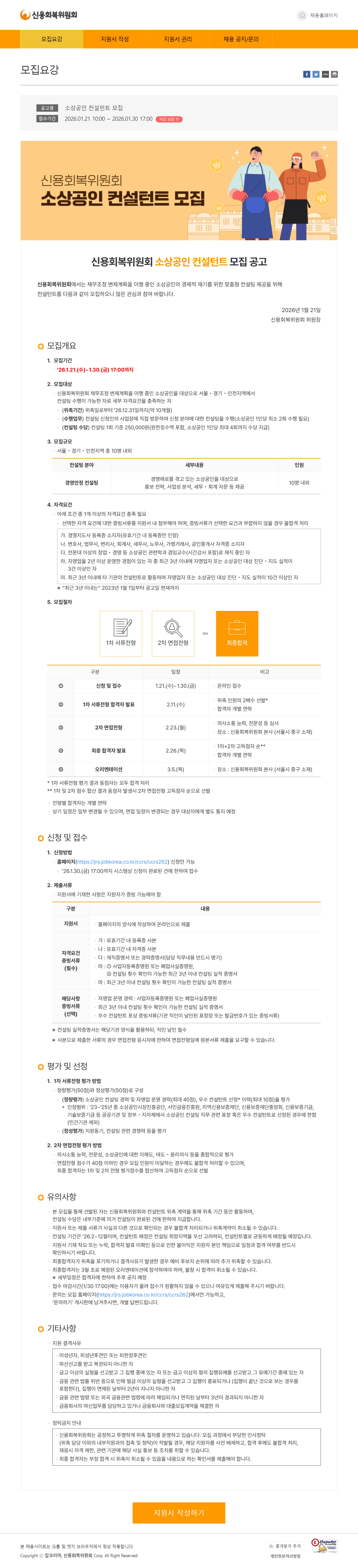 [신용회복위원회] 소상공인 컨설턴트 모집공고