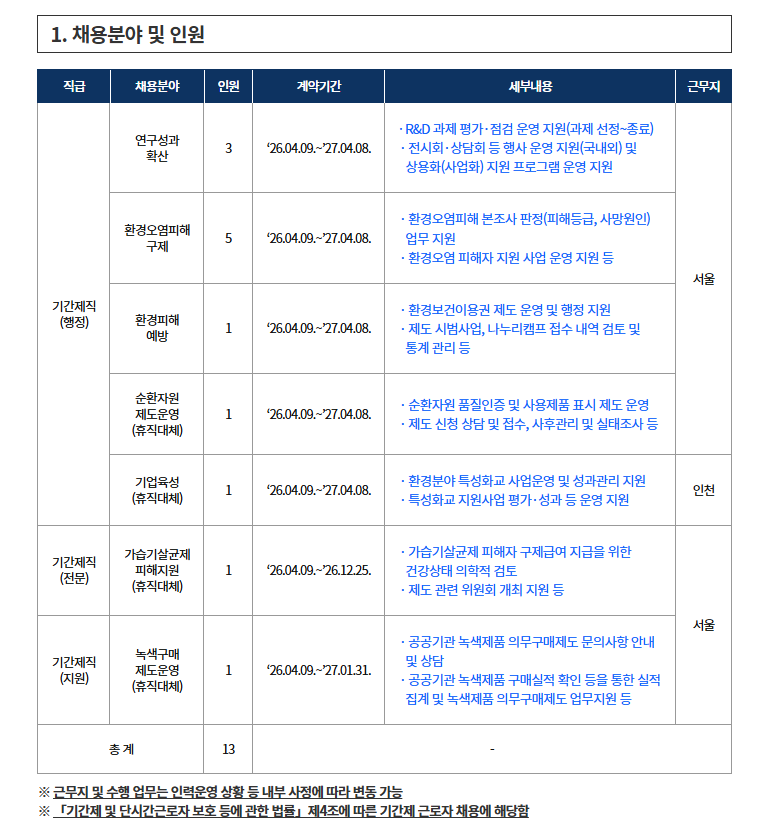 한국환경산업기술원 제1차 기간제직원 채용